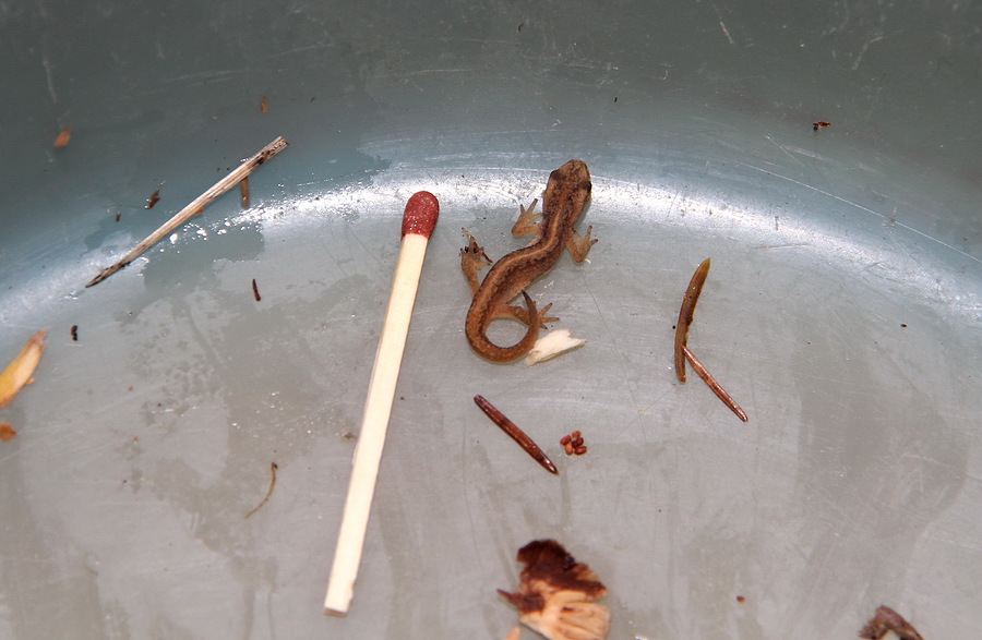 lymysi ämpärissä suppilovahveroitten joukossa. Jotenkin se oli joutunut sienien