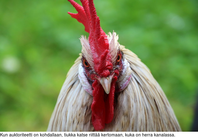 kuin uitettu kukko”. Nyt, kun pihakanalat ovat yleistyneet, niin ehkäpä joku