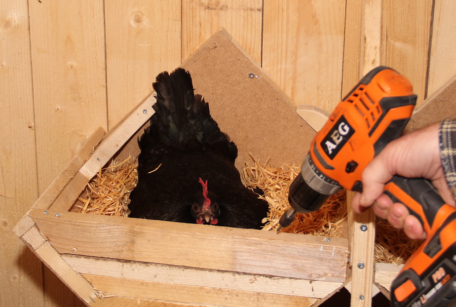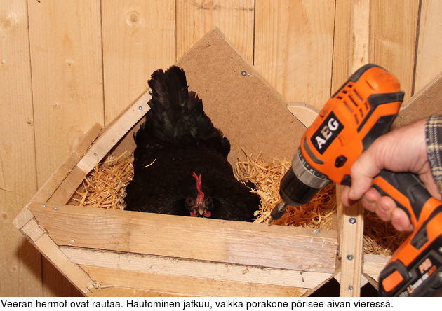 oli koko ajan pesässä ihan rauhallisena, vaikka Reijo porasi, ruuvasi ja