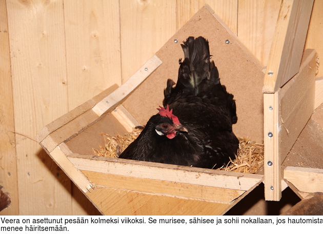 yksinäinen kananpoika on surullinen, lisäsin kuusi munaa Veeran helman alle.