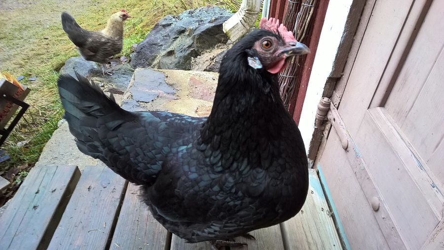 Vermutti on vuoden ikäinen kaunis musta kana. Se on emonsa Veeran näköinen, mutta tavoiltaan aivan erilainen. Se on Reijon erityiskesy kana vaikka se kasvoi pikku-untuvikosta kanaksi viime talven aikana kanojen talvihoitopaikassa. Sitä ei haitannut siirtyminen huhtikuussa tänne meille vaan se on kanoista rohkein ja seuraa Reijon ulkopuuhia mieluummin kuin on toisten kanojen laumassa.