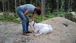 Kesän alkupäivien aurinkoisina aamuina Lumikki halusi ottaa lypsyn jälkeen torkut hiekkakasassa kanatarhan päädyssä. Selvästikin lämmin pehmeä hiekka ja aurinko hoitivat sen vanhoja luita. Sillä oli aivan kamala karvanlähtö. Karva irtosi tuppoina ja se kutisi niin, että se hankasi nahkansa monista k...