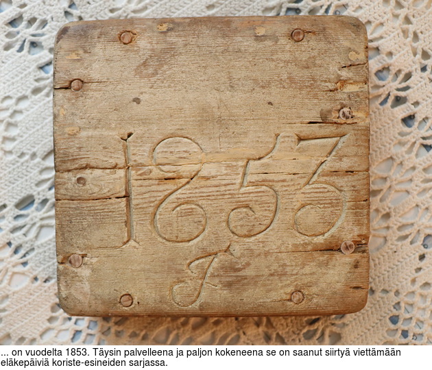 juustokehän. Sen pohjassa on vuosiluku 1853. Sillä olisi varmaan monta tarinaa