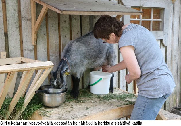 Kauniilla ilmalla lypsän Siirin ulkona olevalla pöydällä,