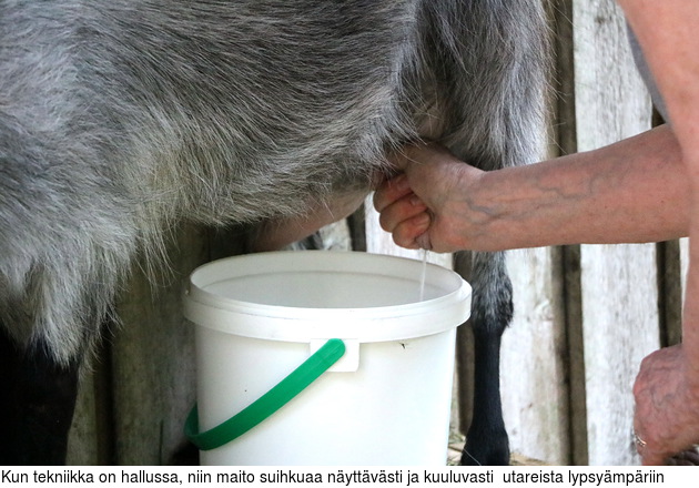 mutta aamuisin, kun on vielä viileää, lypsän sisällä. Silloin nostan vanhan