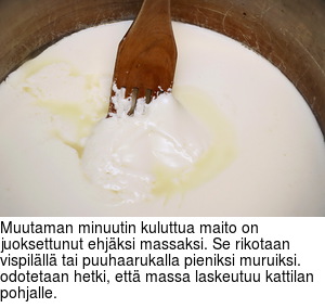 maitoa reilu pari litraa. Kun siihen laitetaan lisäksi kolmasosa lehmänmaitoa,