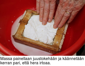 puolet juustonvalmistuksessa jääneestä herasta. Heraämpäri pitää ensin hakea