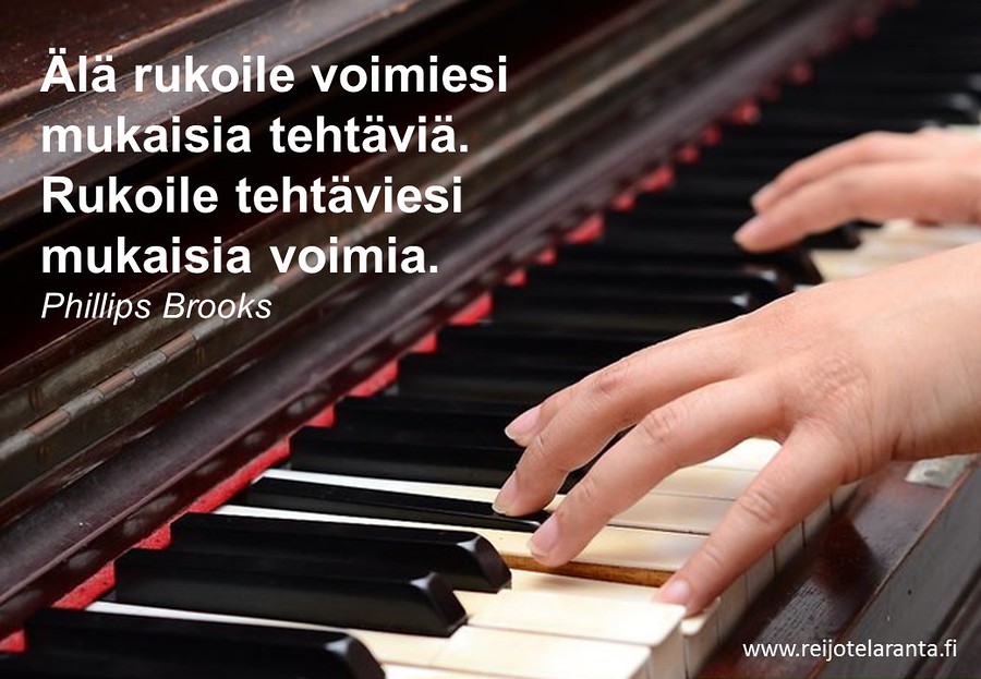 Voit jopa tuntea Mestarin kädet ympärilläsi, kun hänen vahvat kätensä johdattavat, rohkaisevat ja siunaavat työtäsi. Hänen siunaavissa käsissään myös sinun elämäsi arkisesta melodiasta voi kasvaa konsertto, joka koskettaa ja rohkaisee monia läheisiäsi. Mestari ei etsi työhönsä monilla taidoilla varustettuja monilahjakkuuksia. Hän haluaa itse varustaa tavalliset ihmiset niillä taidoilla ja lahjoilla, joita me häneltä saamassamme tehtävässä tarvitsemme.