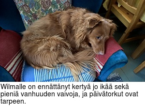 Rakas koiramme Wilma oli tullut vanhaksi. Sitten se sairastui. Eläinlääkäri tutki potilaan huomaavaisesti ja hellästi. Sen jälkeen hän kertoi Wilman olevan vakavasti sairas. Joillain hoidoilla sen elämää voitaisiin ehkä vielä hieman jatkaa, mutta samalla pitkitettäisiin myös sen kärsimyksiä. Hänen mielestään paras ratkaisu olisi antaa tutkimusta varten jo nukutetun koiran vaipua lopulliseen uneen.