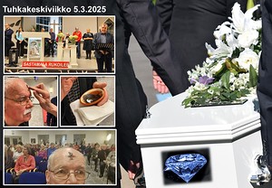 Sain olla tuon illan puhujana. Teemaksi olin valinnut luontevasti tuona päivänä alkaneen paastonajan, tuhkakeskiviikon ja tuhkan sekä tuhkaristin, jonka halukkaat saivat puheeni lopuksi ottaa vastaan otsaansa. Ristejä sormenpäällään piirtämässä olivat kanssani vapaaseurakunnan pastori Hannu Hietaniemi ja helluntaiseurakunnan pastori Matti Karvinen.