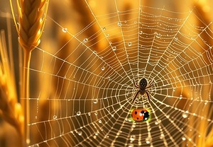 ”Sinun on parasta uskoa minua,” pikkuinen ötökkä jatkoi. ”Tämän pellon luonut viljelijä on pian tulossa suorittamaan sadonkorjuun. Hän lähettää tänne suuret koneensa. Kaikki viljankorret kaadetaan maahan ja jyvät kerätään talteen. Sinun verkkosi tuhoutuu ja ellet kiireesti lähde täältä, sinä kuolet!” ötökkä jatkoi.