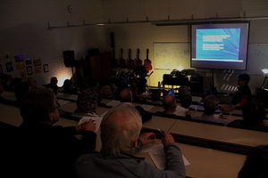 Hämärässä ja vain osittain valaistussa auditoriossa pitämäni . Tarjolla on monenlaista hätkähdyttävää tietoa niin itsemurhista, aborteista kuin eutanasiastakin. Voit lukea luentomonisteen ja kuunnella koko puheen tai katsella illasta otettuja kuvia. Tässä keskityn vain asiaan, jota ainoastaan hieman sivusin puheeni lopussa: Miten kohdata kuolema, joka meillä jokaisella on väistämättä edessä? Miten valmistautua ja aikanaan siirtyä turvallisesti rajan toiselle puolelle?