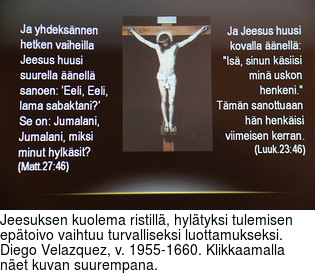Se ei kuitenkaan ollut hänen viimeinen huutonsa eivätkä viimeiset sanat ennen kuolemaa. Epätoivo ja hylätyksi tulemisen kokemus vaihtuivat aivan toisenlaisiksi sanoiksi: "’Isä, sinun käsiisi minä uskon henkeni.’ Tämän sanottuaan hän henkäisi viimeisen kerran.” (Luuk.23:46)