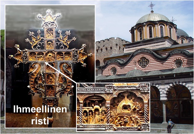 1700-luvun lopussa luostarissa eli munkki nimeltään Rafael. Hän ryhtyi kaivertamaan yhdestä isosta puupalasta erikoista ristiä. Neulan kokoisen työkalunsa ja suurennuslasin avulla hän kaiversi vuosien 1790 ja 1802 välisenä aikana 81 senttiä korkean ja 42 senttiä leveän ristin kaikki pinnat täyteen kuvia. Kun Rafael oli työskennellyt kaksitoista vuotta, ristin muodosti yli 1500 ihmishahmoa, jokainen kooltaan vain vehnänjyvän kokoinen. Silti ne kaikki olivat ilmeikkäitä ja pikkutarkasti tehtyjä.