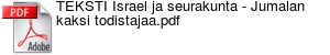 Raamatulla on näihinkin asioihin selkeä kanta. Voit katsoa sen puheeni referaatista ja siihen liittyvästä diasarjasta. Käytin dioja puhuessani 12.3.2011 Suomen Karmen-yhdistyksen tilaisuudessa Helsingissä Metodistikirkossa. Otsikkona oli ”Israel ja seurakunta – Jumalan kaksi todistajaa”. TV7 raamatukoulussa aihetta käsitellään keskiviikkona 11.5.2011 lähetetävässä jaksossa.
