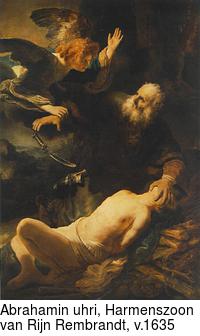 "Minä vannon itse kauttani, sanoo Herra: Sentähden että tämän teit etkä kieltänyt minulta ainokaista poikaasi, minä runsaasti siunaan sinua ja teen sinun jälkeläistesi luvun paljoksi kuin taivaan tähdet ja hiekka, joka on meren rannalla, ja sinun jälkeläisesi valtaavat vihollistensa portit. Ja sinun siemenessäsi tulevat siunatuiksi kaikki kansakunnat maan päällä, sentähden että olit minun äänelleni kuuliainen." (1.Moos.22:16-18)