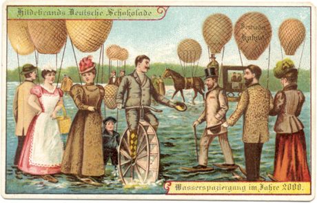 Saksalainen suklaatehdas Hildebrands Deutsche Schokolade, joka pyysi vuonna 1900 asiantuntijoita ennustamaan, millainen maailma olisi vuonna 2000, ei liioin onnistunut kovin hyvin, kuten oheisesta kuvituksesta voi havaita. ”Ennustaminen on vaikeaa, varsinkin tulevaisuuden.”