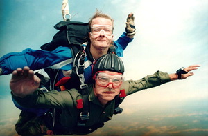 Tunne oli unohtumaton. Siellä minä pyörin ilmassa neljän kilometrin korkeudessa täysin avuttomana tekemään yhtään mitään. Kumppanini avattua pienen jarruvarjon maailma lakkasi kieppumasta ja asentomme rauhoittui. Maa oli nyt jossain hyvin kaukana kasvojemme alapuolella, mutta lähestyi noin 160 km/t nopeudella. Kun olimme pudonneet hurjaa vauhtia noin kolmen kilometrin verran, hyppykaverini avasi ison varjomme, ja me leijailimme turvallisesti takaisin lentokentälle.