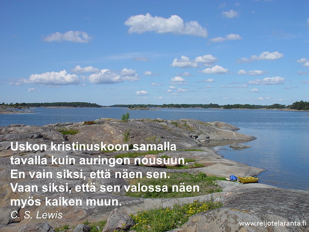 Eilinen sade on mennyt. Tänään aurinko paistaa. Tuoksuu kesältä. Kaikkialla näkyvät Luojan siveltimen mahtavat vedot herkkinä ja samalla väkevinä. Koko luomakunta todistaa iloisesti Luojastaan kutsuen kiittämään ja ylistämään Hänen hyvyyttään.