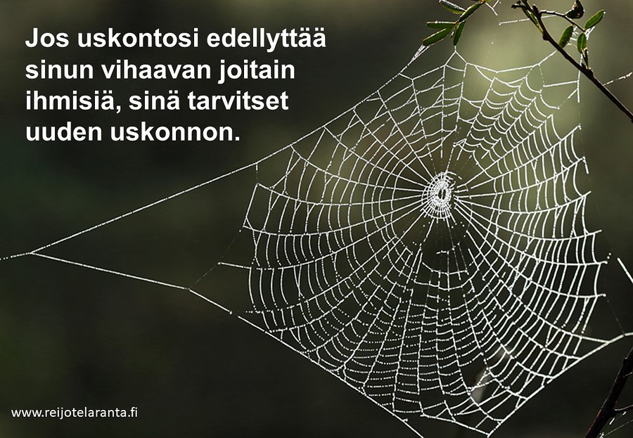 Meillä kaikilla on taipumus jakaa ihmissuku kahteen ryhmään: me vastaan he. Tämä tapahtuu uskonnollisin perustein, mutta se voi myös tapahtua etnisistä, kulttuurisista tai kielellisistä syistä. Kaksi voimakkainta ja vaarallisinta sanaa ovat me ja he. Tästä tavasta Jeesus haluaa meidät esimerkillään vapauttaa.