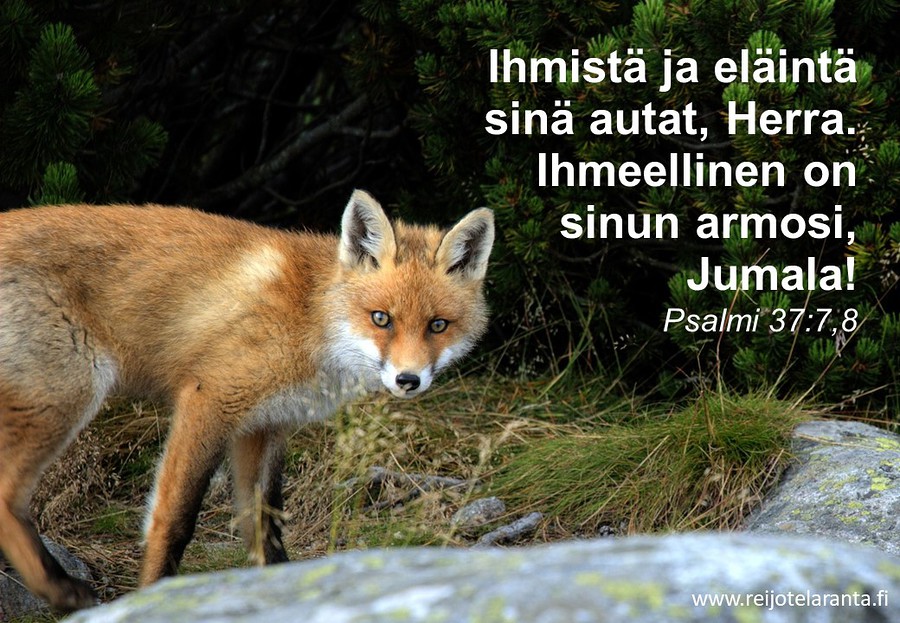 Herra, sinun armosi on avara kuin taivas, pilviin ulottuu sinun totuutesi. Vanhurskautesi on vuoria korkeampi ja oikeutesi kuin syvyyksien syvyys. Ihmistä ja eläintä sinä autat, Herra. Ihmeellinen on sinun armosi, Jumala! Sinun siipiesi suojaan rientävät ihmislapset. (Psalmi 36:6-8)