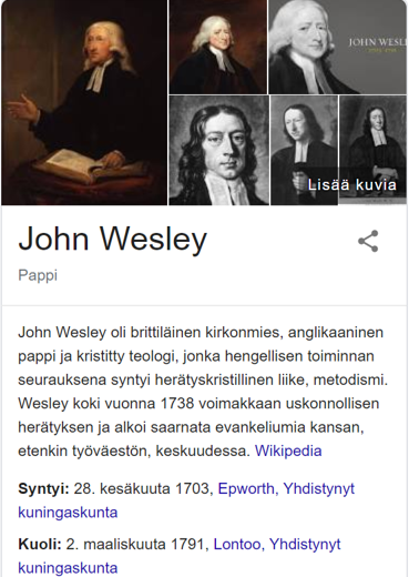 John Wesley eli 1700-luvulla. Hän oli erittäin pidetty