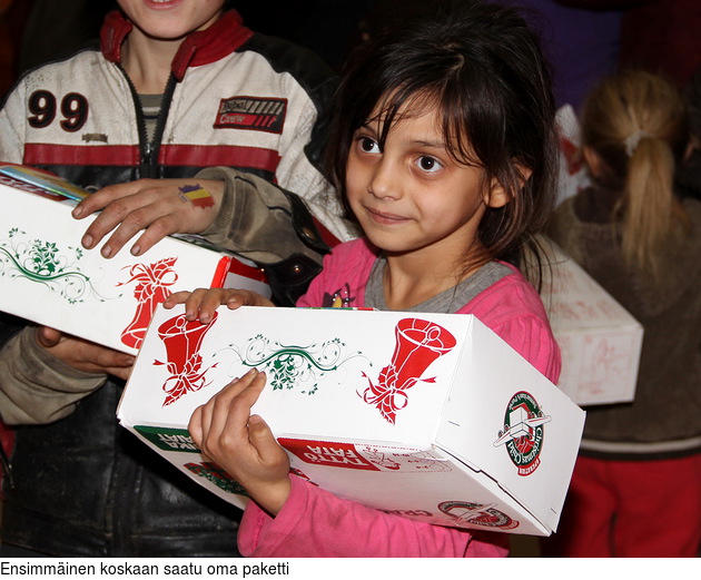 Olin Kaijan kanssa marraskuussa 2011 mukana jakamassa Operaatio Joulun Lapsen kenkälaatikon kokoisia joulupaketteja Romanian syrjäkylissä asuville Euroopan köyhimmille lapsille. Monelle lapselle tuo paketti oli ensimmäinen hänen koskaan saamansa oma paketti. Se valtava ilo, minkä paketeista löytyneet vaatteet, hygieniatarvikkeet, lelut, koulutarvikkeet ja monet muut tavarat saivat aikaan, jäi pysyvästi mieleeni.