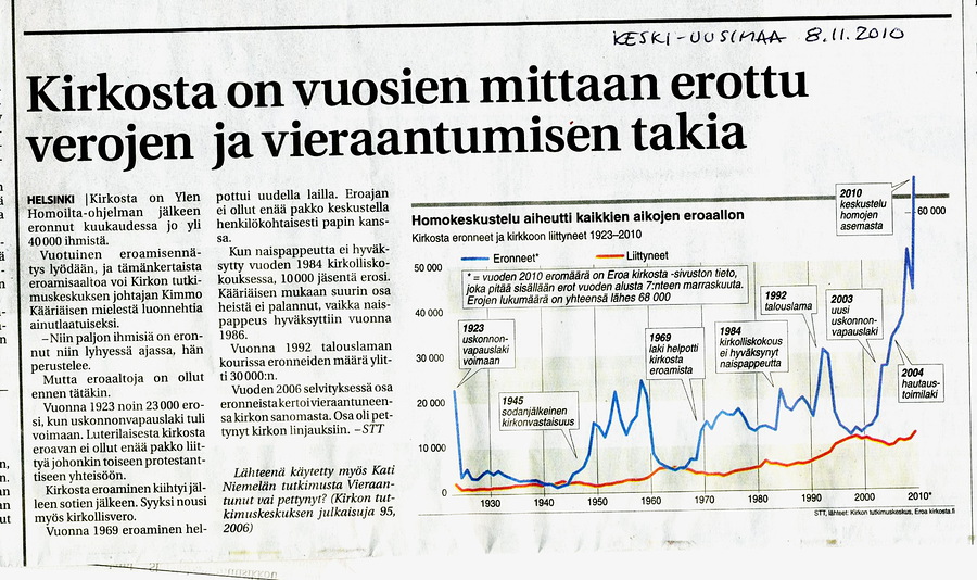 Kirkossamme tarvitaan nyt enemmän polvien kuin takamuksen teologiaa. Uhkakuvat ja hurjat kirkosta eroamisen luvut voivat kääntyä uudeksi mahdollisuudeksi ja siunaukseksi vain rukoillen, sitoutumalla Raamattuun Jumalan sanana, vuorovaikutteista yhteisöllisyyttä rakentamalla sekä ottamalla toiminnan voimaksi Pyhän Hengen alati uudistava hengellinen elämä.