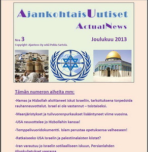 ActualNews numero 3 sisältää runsaasti dokumentein ja lainauksin vahvistettua tietoa Lähi-idän tilanteesta. Hamasin ja Hizbollahin uudelleen aloittamat raketti-iskun Israeliin saavat uutisia syvempää taustoitusta. Kolme Yhdysvaltoja uhkaavaa ja tiedemiesten mielestä minä hetkenä tahansa toteutuvaa valtavaa luonnonmullistusta maalaavat ennennäkemättömiä tuomiopäivänkuvia.