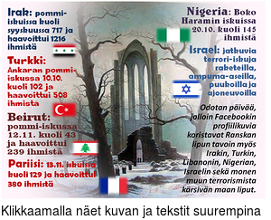 Vuonna 2014 terroristien hyökkäyksissä kuoli yli 32 600 ihmistä. Vuonna 2013 määrä oli 18 100, mikä oli selkeästi enemmän kuin vuonna 2012. Yli puolet terrorin uhreista menetti henkensä ISISin ja Boko Haramin iskussa. Kuolemista neljä viidesosaa tapahtui Nigeriassa, Syyriassa, Irakissa, Pakistanissa tai Afganistanissa, kertoo Institute for Economics and Peace järjestö.