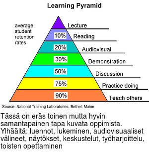 Millä tavalla sinä opit parhaiten uusia asioita? Miten me kenties voisimme tehostaa uusien asioiden omaksumista ja muistamista? William Glaser on tiivistänyt oppimisprosessin mielenkiintoisella tavalla: